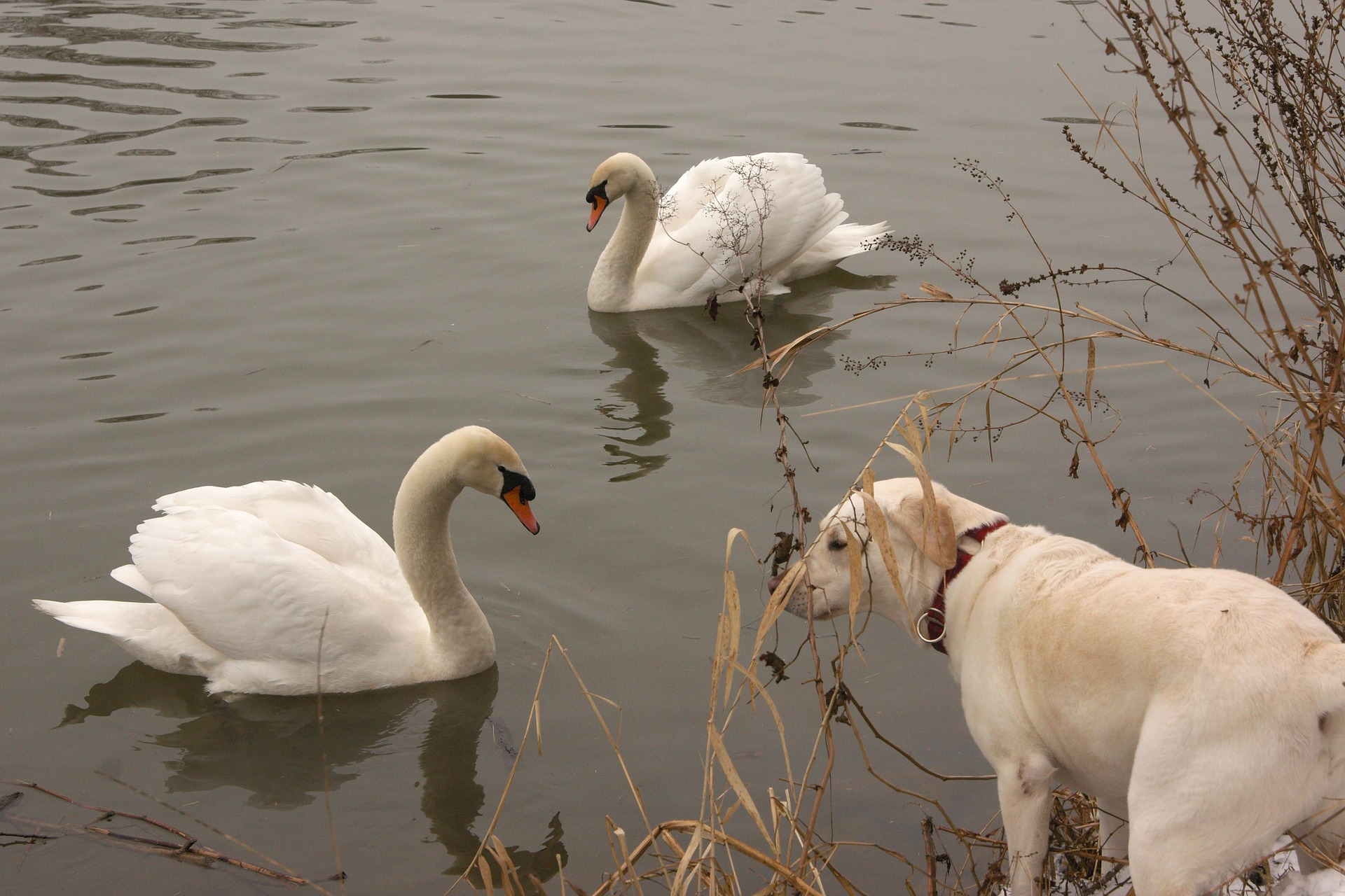 - Le chien se couche ou s’assoit en face de vous ? Il tourne la tête, se lèche les babines timidement ? Il communique par codes canins à votre chien, signifiant qu’il ne veut pas de conflit.